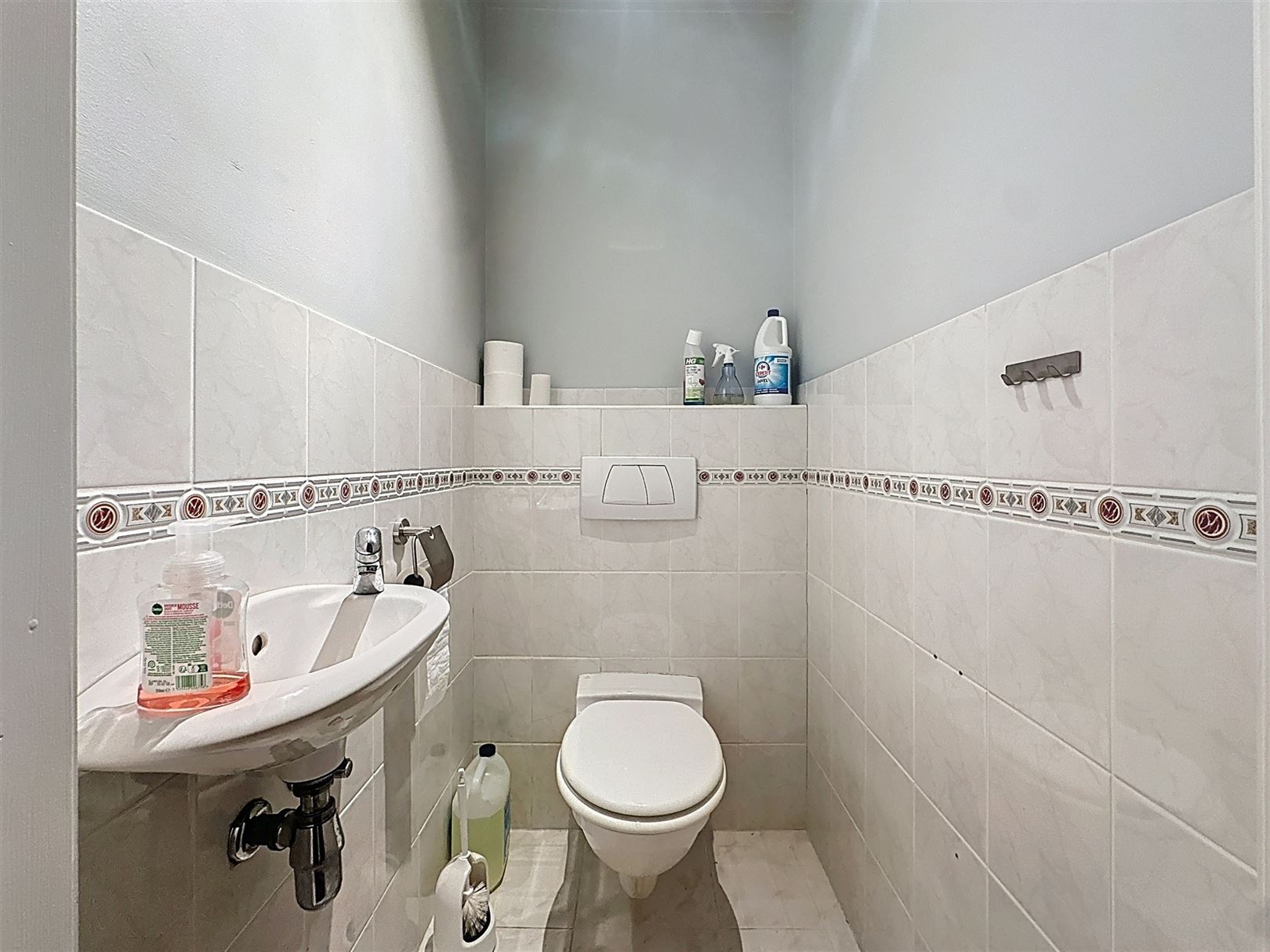 De mooie ruime en zonnige woonkamer die uitkomt op het zonneterras, heeft een parketvloer en er is een open geïnstalleerde keuken met rechtstreekse aansluiting tot berging met wasplaats. Er zijn 2 slaapkamers (+/- 14m² en 17m²), voorzien van rolluiken, deze geven rechstreeks toegang naar het terras aan de achtergevel. In de badkamer staat een meubel met dubbele lavabo en spiegelkast en is voorzien van zowel een ligbad als een douche. In de hal is er nog een gastentoilet en een vestiaire met ingemaakte kasten.