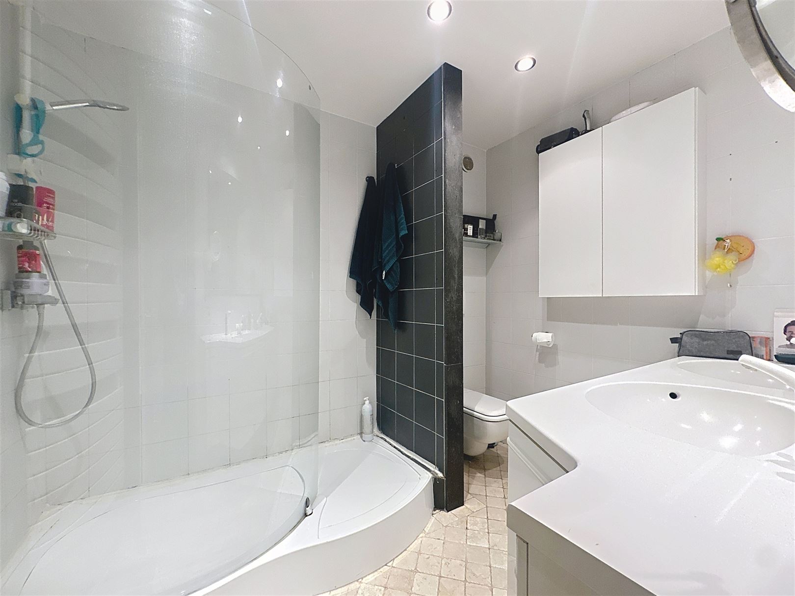 Op de eerste verdieping bevinden zich twee mooie, ruime slaapkamers met parket en rolluiken. De badkamer is uitgerust met een inloopdouche, toilet en dubbele lavabo.