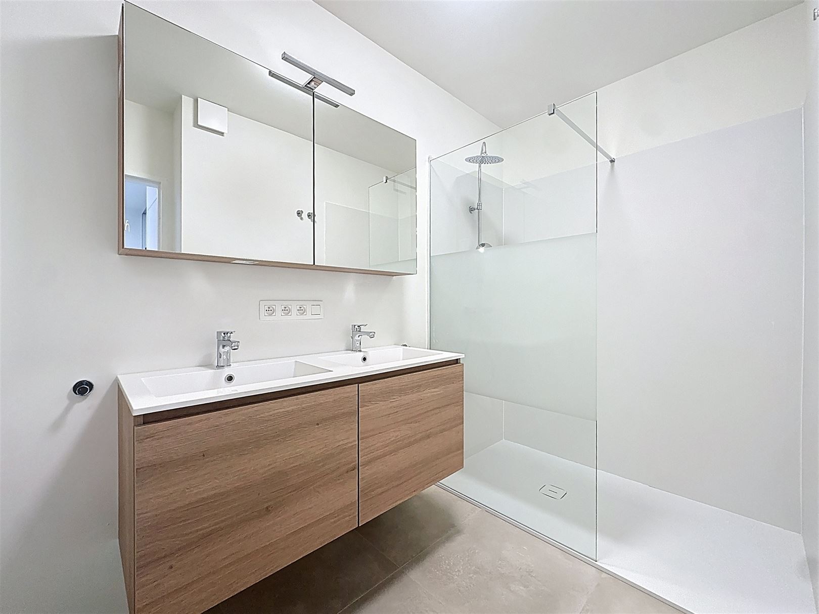 De nachthal geeft toegang tot drie slaapkamers van respectievelijk ca. 16 m², 15 m² en 9 m². De badkamer is uitgerust met een inloopdouche en een dubbele lavabo.